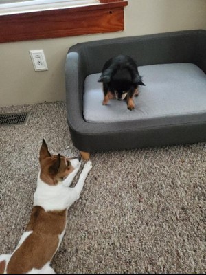 [This review was collected as part of a promotion.] recently got a new dog and this sofa is pretty amazing my dog loves this bed! It’s soft,comfortable and very sturdy. It comes with a removable cover on the pad to easy the ability of washing it when needed. It’s a raised bed so doesn’t lay on the floor like the other typical dog beds comes with small legs you screw to the bottom of it. I like that because the bed is raised off the floor and not directly on the floor which keeps it cleaner longer. It also stops my dog from dragging it across the room constantly. Above all the bed is made of a sturdy strong material so it will withstand the usage of time with a big dog. It’s a bit small on my dog but it’s doesn’t stop her from using it. Even my 2 year old occasionally will climb up and sit with my dog on it. Overall it’s a pretty neat sofa would definitely recommend.