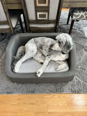 [This review was collected as part of a promotion.] I am absolutely in love with this gorgeous dog bed! I’ve never had anything quite so fancy for my pup and I think we’re both just as excited to get this in the mail! This has the cutest, most modern design that fits my decor. And it fits my medium size dog perfect! It was super easy to put together, all you do is screw on the 4 legs and that’s it! Took me 5 minutes to put it all together. The inside padding is removable so you can wash it as well which I absolutely love! If you’re contemplating getting this bed just do it! You and your pup won’t regret it!