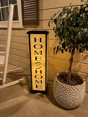 [This review was collected as part of a promotion.] This is the perfect addition to my porch. It has two light options for a white glow or an amber glow. It’s solar powered which guarantees that I always have a light on my porch everytime the sun goes down. I love that I can rotate it around to say home sweet home or welcome. This would make the PERFECT housewarming gift as well! Gives off the perfect amount of light and en elegant touch to my porch day or night!