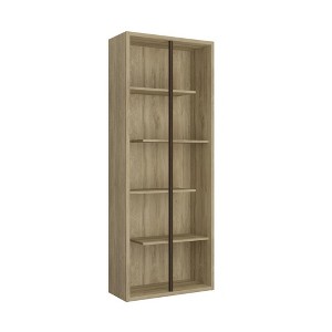 This stylish Techni Mobili 5-Tier staggered shelves wooden bookcase adds classic style to your home living area, home-Office, or even your Bedroom. This item is part of Cassa Collection; Sold Individually and also part of Collection Set. It features a structure made of engineer wood panels with a steel vertical structural bar. It is available in 2 woodgrain colors, Walnut and Pine.
