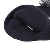 - Custom Design: Displays an embroidered team logo on a gray wrap-around stripe, and a black and white pom for a sporty touch