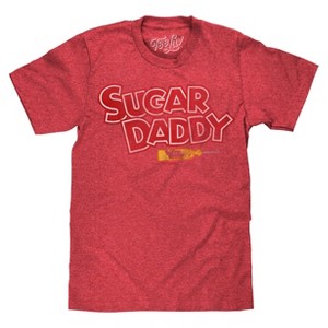 • YOUR NEW FAVORITE CANDY T-SHIRT: Enjoy the nostalgia of the Sugar Daddy logo and lollipop graphic - distressed and printed on the softest red heather tee we could find.