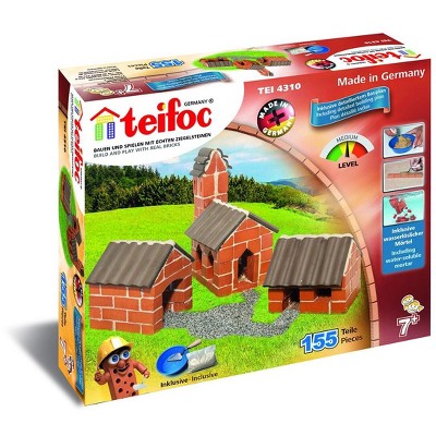 The Teifoc School Set brick and mortar construction kit assortment is a mixed 320 pieces brick building set that contains enough materials for up to 8 children, using real clay bricks and cement. Includes guided instructions that helps teachers or parents understand how to use Teifoc brick construction sets during the most educational hour in the classroom or playtime. The set consists of over 320 parts, which are stored in a plastic box. It contains various types of stone, windows, doors, mortar bowls, trowels and water-soluble mortar. Playing with Teifoc products promotes fine motor skills as well as logical and spatial thinking. To build a new model, simply soak in water, dry the bricks and start again. It's as easy as that! Teifoc is designed, engineered, and manufactured by Eitech in Germany.