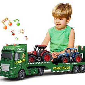 - 【Toddler Truck Toy】This super value large truck include 25" extra-long transport truck, helicopter and tank. Detachable truck head and flexible knuckle can be turned left and right, and movable tailboard can be moved up and down and detachable and tank could rotate 360° drgrees, all this simulation function let boys have excited of transporting helicopters and tank. A variety of ways to play, increase children's imagination to create more game scenarios.