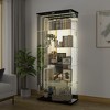 - Glass Display Cabinet with Strip Light & Mirror: Glass display cabinet with Strip Light and Mirror Panel. Lights can dance to the rhythm of the music around you and sense your presence to turn on the lights for you. The light strips add a mysterious and romantic atmosphere to this cabinet. This glass display cabinet can decorate your room well. It is perfect for displaying books, photos, medals, dolls, wine bottles, toys, artworks, decorations, etc. It can be used as a living room display cabinet, kitchen wine cabinet, study bookshelf or cultural relic display cabinet in the collection room! Suitable for any home style.