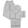 These easy care pajamas are great any time of year. The top features a notched collar, button front and patch pocket. The pants feature a covered elastic waist with adjustable button closure and a button fly. Made of 65% Cotton, 35% Polyester