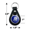- QUALITY MATERIAL: Our durable round keychain is crafted from leather with a glossy resin-topped emblem featured design shown on one side. Approximately 1.5" (3.8cm) x 2.5" (6.4cm) in overall size, emblem is 1" (2.5cm)..