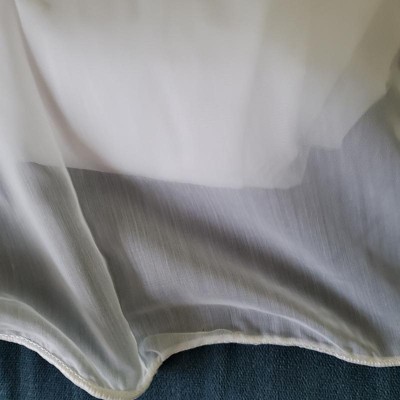 [This review was collected as part of a promotion.] These white sheer drapes are very pretty. They are true to size and appear to be well made. The only negative is the hem line. I was going to pair these with a navy and white sheer. My botanical print sheer has a tradional hem. My new white sheer has a pencil edge. They may hang well if you were going to have the sheer drape pool on the floor.