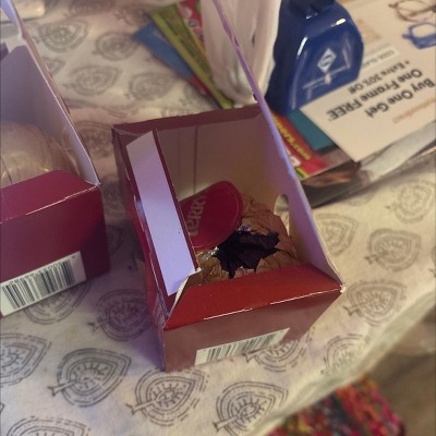 Chocolates good, but when I received my order (pickup) the box was open, the plastic packaging on the inside was missing and the foil was open so I have no idea what it was exposed too