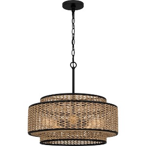Part of the Quoizel Naturals collection, the Teton pendant spotlights coastal styling and natural elements. The classic drum silhouette is accentuated by casual layers, while the rope shade adds depth and contrast to the otherwise simple frame. Choose from a matte black finish with a natural rope shade or a brushed gold finish with white rope.