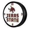 This premium Texas State University Retro Lighted Wall Clock will be sure to add the finishing touch to any room in your home or office. This piece is injection molded and features a high-resolution, high gloss digitally printed face. Comes with an 8 foot power cord and an on/off pull switch for the light. LED illuminated. Hanging hardware and light bulb included. This is an officially licensed product of Texas State and made in the USA.
