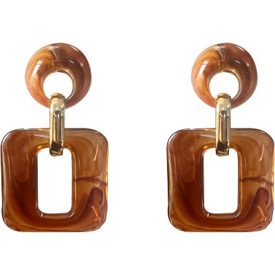 Textured Geometric Square Acrylic Earrings Brown One Size