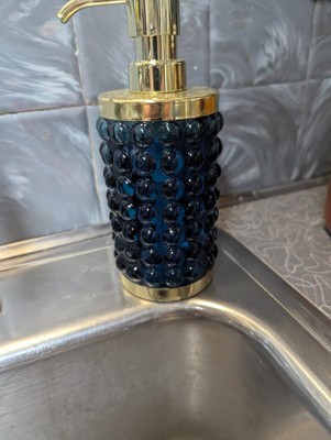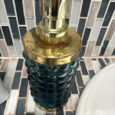 I love this soap pump for my bathroom. I have a pedestal sink and there is not a lot of room around the sink and this fits perfectly and it's beautiful. I love the raised bubbles, and the blue with the gold!