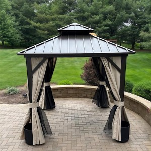 PURPLE LEAF 08' x 08'Outdoor Hardtop Gazebo Metal Frame Galvanized Steel Double Roof with Curtains and Nettings for Patio Desk Backyard Bronze