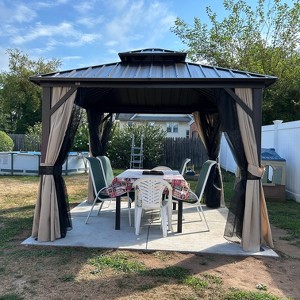 PURPLE LEAF 10' x 10'Outdoor Hardtop Gazebo Metal Frame Galvanized Steel Double Roof with Curtains and Nettings for Patio Desk Backyard Bronze