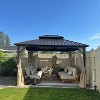 PURPLE LEAF 10' x 12'Outdoor Hardtop Gazebo Metal Frame Galvanized Steel Double Roof with Curtains and Nettings for Patio Desk Backyard Bronze