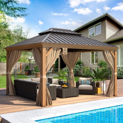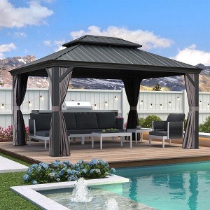 PURPLE LEAF 11' X 14' Permanent Hardtop Aluminum Frame Gazebo with Galvanized Steel Double Roof for Patio and Garden, Curtains and Netting Included