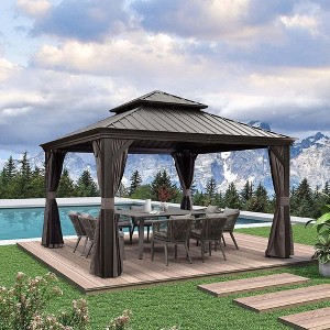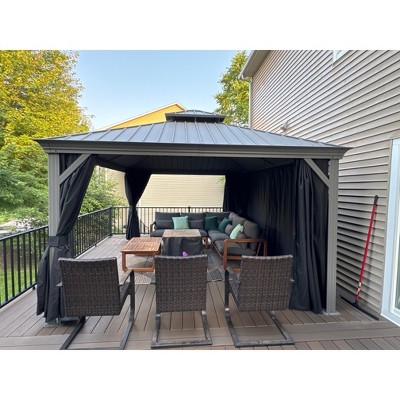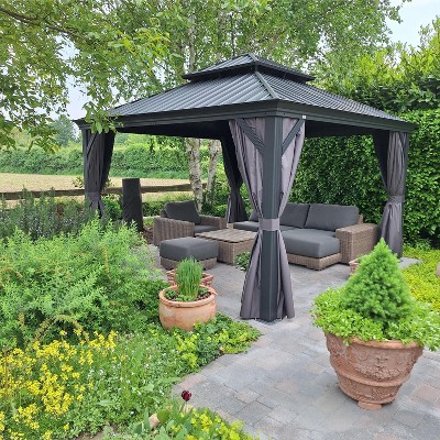 PURPLE LEAF 12' X 12' Hardtop Gazebo Aluminum Frame Gazebo with Galvanized Steel Double Roof for Garden, Curtains and Netting Included, Grey