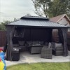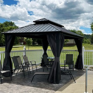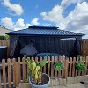 PURPLE LEAF 10' x 14' Permanent Hardtop Gazebo Aluminum Frame Gazebo with Galvanized Steel Double Roof, Netting & Curtains included - Grey