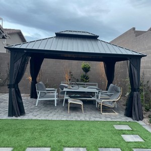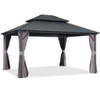 PURPLE LEAF 12' x 14' Permanent Hardtop Gazebo Aluminum Frame Gazebo with Galvanized Steel Double Roof, Netting & Curtains included - Grey