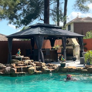 PURPLE LEAF 12' x 18' Permanent Hardtop Gazebo Aluminum Frame Gazebo with Galvanized Steel Double Roof, Netting & Curtains included - Grey