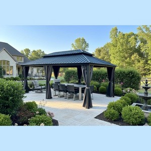PURPLE LEAF 12' x 20' Permanent Hardtop Gazebo Aluminum Frame Gazebo with Galvanized Steel Double Roof, Netting & Curtains included - Grey