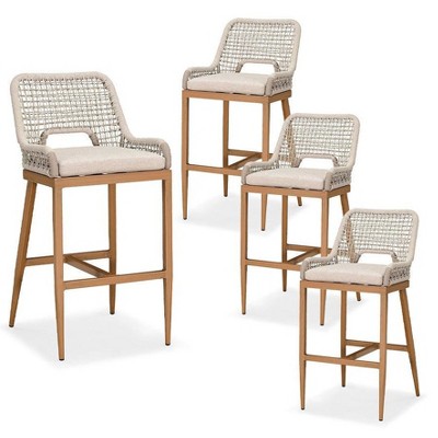Comfortable Cushions: Equipped with thick and highly elastic seat cushions, these bar stools provide ultimate comfort and allow you to completely relax. The water-repellent cushion is tough and won't stain and tear easily.