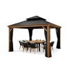 PURPLE LEAF 12' X 12' Outdoor Hardtop Gazebo for Patio Galvanized Steel Double Roof Teak Finish Coated Aluminum Frame Pavilion Gazebo with Netting