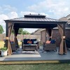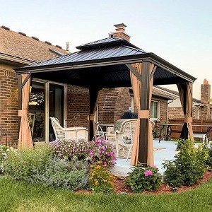 PURPLE LEAF Gazebo 10' X 13' Outdoor Metal Gazebo Galvanized Steel Metal Double Roof Canopy Patio Hardtop Gazebo, Brown