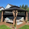 PURPLE LEAF 12' X 12' Garden Bronze Double Roof Aluminum Frame Pavilion And Khaki Curtain Outdoor Hardtop Gazebo