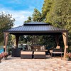 PURPLE LEAF 12' X 16' Garden Bronze Double Roof Aluminum Frame Pavilion And Khaki Curtain Outdoor Hardtop Gazebo