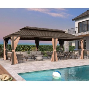 PURPLE LEAF 12' X 24' Garden Bronze Double Roof Aluminum Frame Pavilion And Khaki Curtain Outdoor Hardtop Gazebo