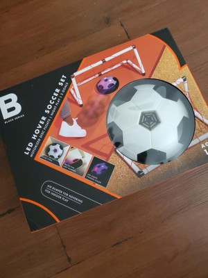[This review was collected as part of a promotion.] The black series hover soccer set is a fun game for the family, it soccer hover ball glides on the floor very easily. The hover ball lights up and changes colors . The soccer nets are easy to assemble