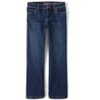 The Children's Place Girls Basic Bootcut Jeans Jump into fun with our bootcut jeans; the perfect pair for every day. Designed with a comfortable mid rise bootcut jeans fit and gentle flare, these pants offer easy movement, while the adjustable waist ensures just the right fit. Stylish and durable, these girl jeans are ideal for play, school or whatever adventures come her way.FABRICATION: 79% cotton/20% recycled cotton/1% elastane denim, imported.FIT & DESIGN: Classic fit, mid rise, bootcut leg.CLOSURE: Snap zip fly (sizes 4-7), button zip fly (sizes 8+); inner adjustable waist tabs.FEATURES: 5-pocket styling, belt loops; handsanding & whiskering at front, pre-washed for added softness & to reduce shrinkage..