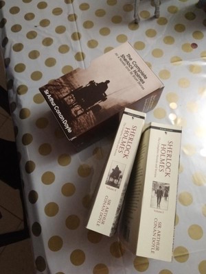 - The complete collection of Sherlock Holmes's adventures in crime, including all four novels and fifty-six short stories featuring Sir Arthur Conan Doyle's classic hero Volume I includes the early novel A Study in Scarlet, which introduced the eccentric genius of Sherlock Holmes to the world.