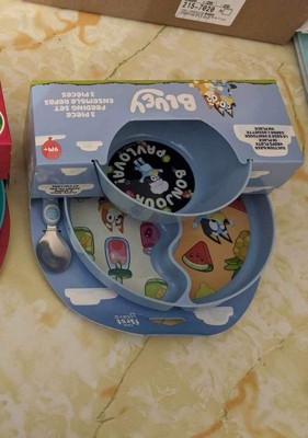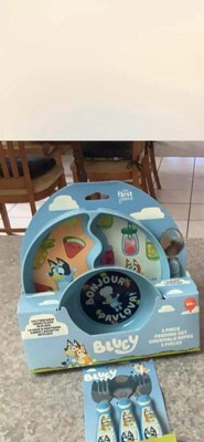 The First Years Bluey 3pc Mealtime Set with Divided Suction Plate, Bowl and Spoon - 9 Months+