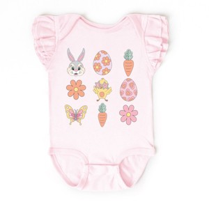 Celebrate Easter in style with our Easter Favorites Chart design. This whimsical and colorful print features a charming chart layout showcasing all your favorite Easter symbols such as bunnies, decorated eggs, blooming flowers, and more. Perfect for adding a festive touch to your celebrations, this design is a must-have for anyone who loves the holiday season. The pastel colors and playful illustrations make this design a cheerful addition to any product, bringing a touch of springtime joy to your everyday essentials. Bring the spirit of Easter to life with our Easter Favorites Chart print! Get your little one ready for a day of play in this adorable Flutter Sleeve Bodysuit. With fun colors, cute graphics, and flutter sleeve detail, this high-quality bodysuit is soft and comfortable for all-day wear.