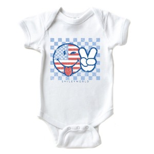 Product Name: The Juniper Shop SmileyWorld Patriotic Checkered Peace Baby Short Sleeve Bodysuit - 12M - White