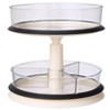 The 2-Tier Turntable Organizer maximizes storage without compromising on style. Rotating shelf takes advantage of vertical space and lets you access your essentials with the simple spin of a finger. Whether it's spices in the kitchen, toiletries in the bathroom, or office supplies at your desk, you'll discover how effortlessly this organizer keeps everything within reach. Just give it a spin! Made of: Polyethylene terephalate, plastic and thermoplastic Rubber Measurements: 11-1/4" dia. x 13-3/4"H