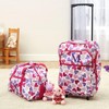 Guests appreciate the wheeled suitcase and duffel set for its cute design and durability, making it ideal for young travelers. Many guests noted that the luggage is perfect for sleepovers and weekend trips, with ample space for packing. The vibrant colors and personalization options add to its appeal, although some guests expressed a desire for more monogram options. Overall, it is a well-received gift for children.