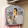 Transform a regular hanger into an organizer with an Accessories Hanger Cover. Slip it on any hanger (not included) to create space for toiletries, shoes and more. Use the smaller pockets on the back for jewelry and other accessories. Then, hang your blazer, shirt or dress over the unit. It's a great way to organize an outfit while traveling. Made of: Polyester Measurements: 18-1/8"W x 1"D x 17-3/4"H Care: Machine washable