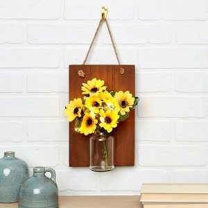 Make any room bloom with a lighted Floral Wall Sconce. High-quality fabric flowers are presented in a glass vase filled with LED fairy lights. The vase is secured to a wood background that fits perfectly with any country decor. Arrives ready to hang. Made of: Wood, polyester, glass and polypropylene Measurements: 7"W x 4"D x 11"H Notes: Requires 3 "AA" batteries; not included