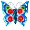 Brighten up your outdoor space with Garden Wall Art. These colorful creatures are decorated in irredescent shades and sparkling glass accents. Easy to install on any fence or wall. Made of: Metal and glass Measurements: 12-1/2"W x 14-1/4"L
