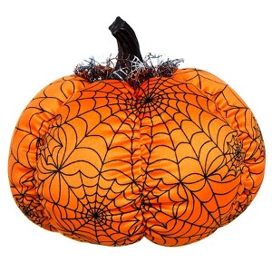 The Lakeside Collection Halloween Plush Webbed Pumpkin Decor - Orange or Purple Orange