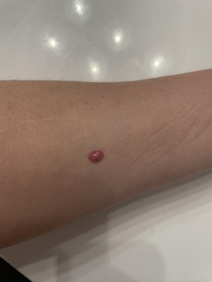 I have never used a blush like this and a little goes a long way. It says put two drops on your apples but I think one is enough. You need a blender to move this around and it is pink. Too pink for me and my skin, naybe if my skin was darker it would not stand out so much. I think the product is unique but the color is not for me at all.