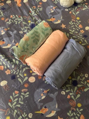 The Peanutshell Ocean Girl Microfiber Crib Sheets set offers a delightful combination of softness, vibrant colors, and adorable designs that are perfect for any nursery. With four sheets included, parents can easily switch up the look while ensuring a snug fit on standard crib mattresses. The breathable fabric is gentle on delicate skin, making it ideal for warmer weather. These sheets are also easy to wash, maintaining their quality and charm after multiple uses.