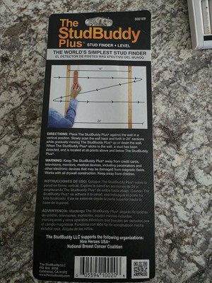 The StudBuddy Plus sent to me by the Hey Bullseye review program is a unique and innovative product! Unlike other widely used stud finders, the StudBuddy Plus requires no batteries to sense studs and includes levels and a couple length scales (inch and cm) for convenience. There is a "method" to using the StudBuddy Plus which is more complicated than with traditional stud finders and could require more time to find; however, I think the convenience of having a stud finder ready anytime regardless of batteries is worth the extra movement, especially if you're in a rural or nature setting.