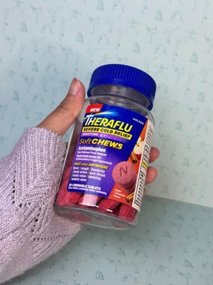 Theraflu Soft Chews are your ultimate solution for fast, powerful anywhere cold relief. We understand the urgency of seeking effective relief wherever you are—no waiting required. Say goodbye to the hassle of finding water for a pill or dealing with messy liquid medicine. Theraflu Soft Chews are a line of powerful cold medicine that comes in a soft and airy chewable tablet, delivering a rush of relief as it tackles your most severe cold symptoms. Each chewable tablet is packed with powerful medicine for a one-stop solution to combat your cold symptoms. Theraflu Soft Chews offer fast, powerful relief for severe cold symptoms, working quickly and lasts for hours. Our formula not only provides relief from cough and sore throat but also tackles fever, body aches, headache, and runny nose, ensuring comprehensive relief. Plus, it's tough on coughs, helping you sleep better at night. With Theraflu, you're in control of your cold. Our Soft Chews are easier to take, no water needed, and packed with powerful medicine in every bite. Experience the convenience and effectiveness of Theraflu Soft Chews today and take control of your cold wherever you go.