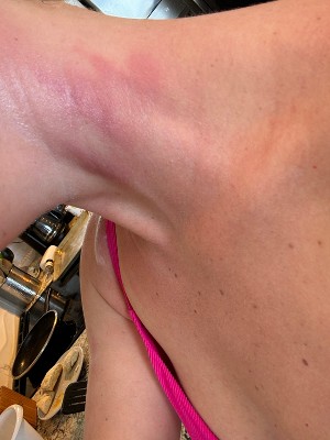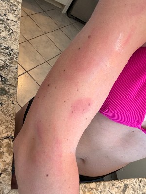 I used this on 4-5 different people in our group and we ALL immediately burned and blistered. We could feel a reaction happening on our skin. We all have a sort of chemical burn. The photos below are just me alone.