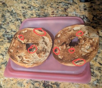 Has an ant inside of bagel before I opened it so had to throw away whole pack